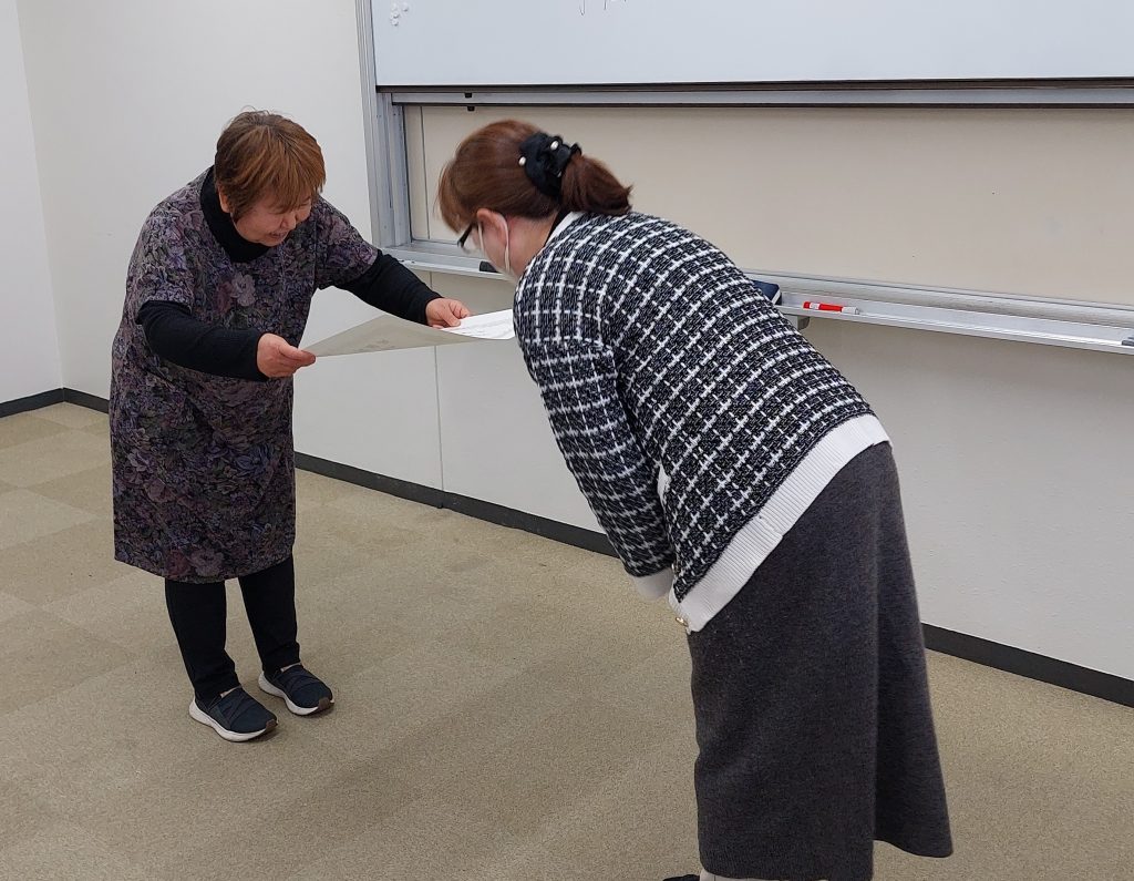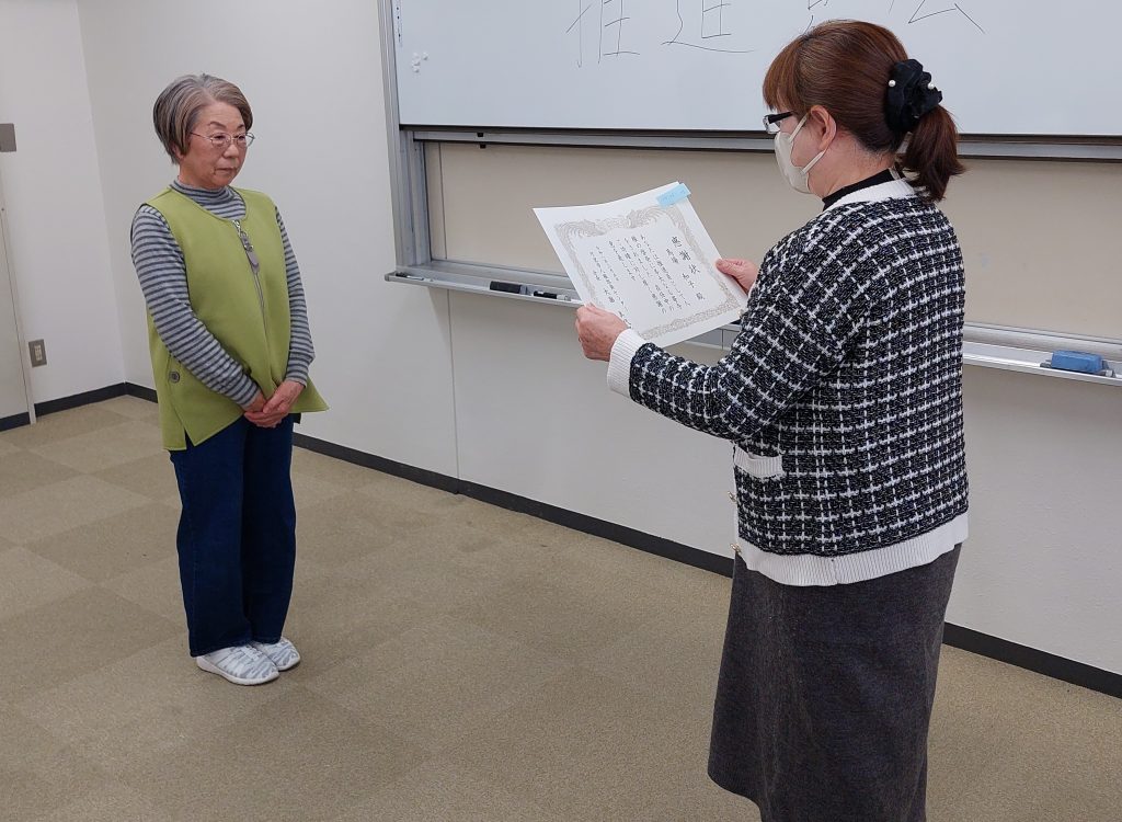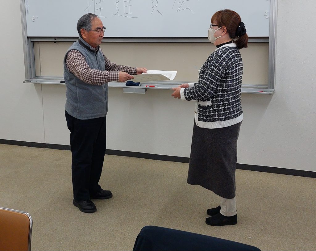 会の最後に、任期満了の推進員退任式も開催しました。感謝状授与・一人ひとり挨拶をしていただきました。
