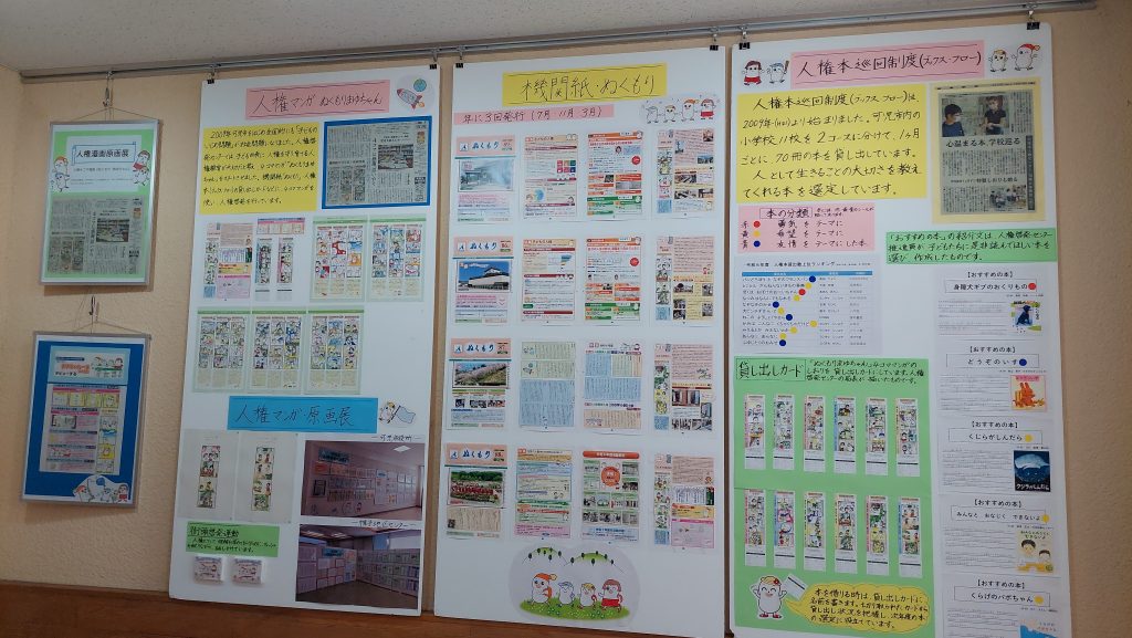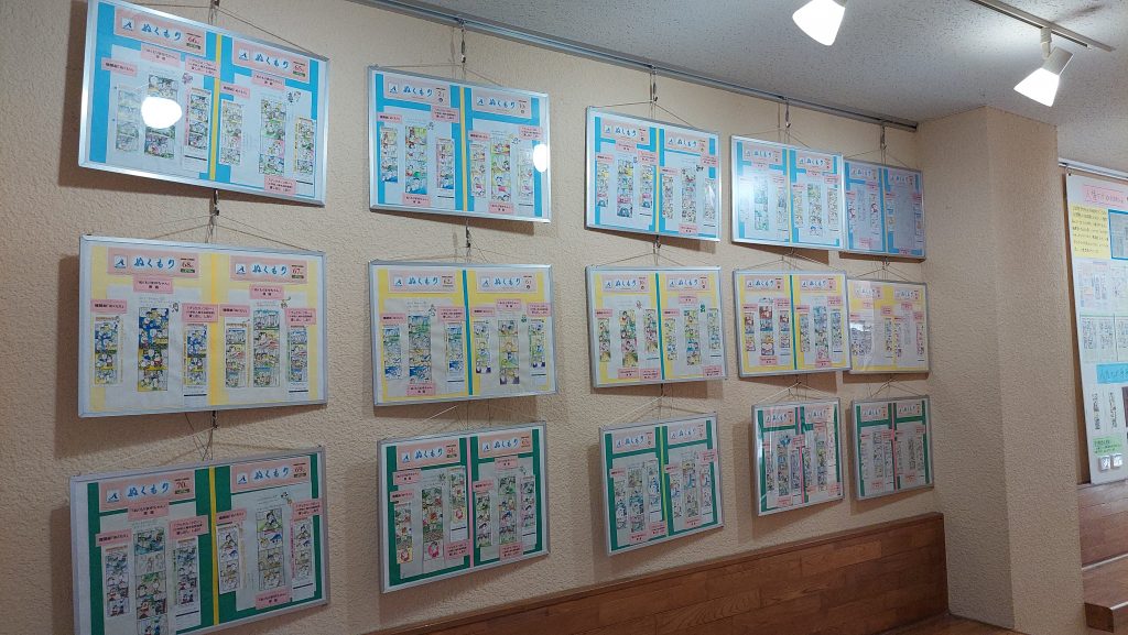 本センターキャラクター「ぬくもりまゆちゃん」4コマ漫画や令和7年度「本センターの活動紹介」等を展示しています。
